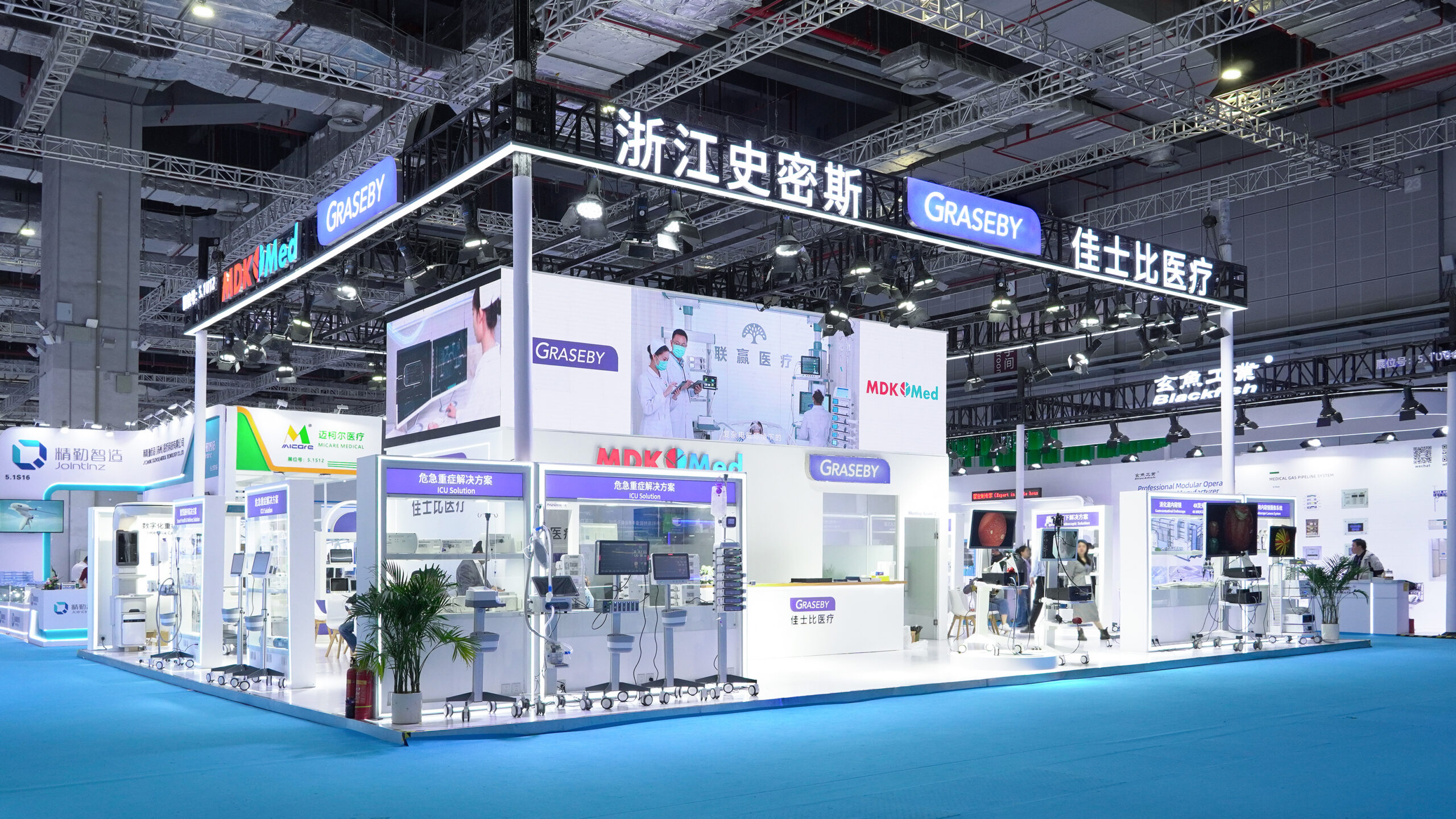 展会现场,联赢佳士比医疗对全院中央监护系统进行实时演示,该系统可兼容接入不同品牌的监护仪,实现全院监护设备的数据整合与集中管理,支持AI多模态综合分析预警,并能对接电子病历系统实现数据自动归档,助力医院构建智能一体化的监护管理体系。